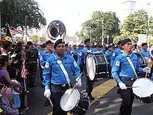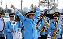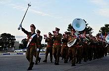 The Brazilian Marine Corps also fields for public duties the Brasilia Marine Corps Band and the Central Band of the Marine Corps. Other military bands include those of the Presidential Guard Battalion, the Independence Dragoons, and the Brazilian Air Force Academy Band. The band for the Presidential Guard Battalion is the only band in the Brazilian Army to include both a pipe band section and a drum corps. Personnel from both the Presidential Guard Battalion Band and the Band of the Independence Dragoons form part of the newly formed Army Marching Band and Pipes and Drums, formed in 2016. The Brazilian Marching Band and Pipes and Drums is composed of 74 musicians who play instruments ranging from instruments for marching bands to traditional instruments.[42] Individual military units operate music bands. Currently, the 3rd Army Division Music Band serves one of the largest military garrisons in the country.[43] Military bands are also active both in the Military Police and the Military Firefighters Corps, one of the most notable of which being the Symphonic Band of the Military Police of Paraná State.
