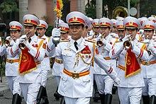 The Angolan Armed Forces maintains Portuguese-style military bands, primarily in the Army, Navy and Air Force and then in individual units of the FAA. The primary band is the 100-member Music Band of the Presidential Security Household, which is the official security service of the President of Angola.[9] The music band of the Army Command was created on 16 June 1994.[10] 4 years later, on 15 August 1998, the National Air Force created a music band within the artistic brigade.[11] Outside the navy's marching band, the navy also has a small musical group known as Banda 10 de Julho (10 July Band), based at the Luanda Naval Base.[12] All bands follow both the Portuguese and British precedent with the percussion at the front ranks of the band.