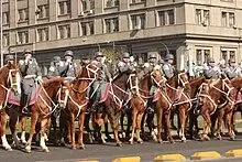 Another notable band of the Argentinian Army is the Mounted Band of the 4th Armoured Cavalry Regiment (Mountain) "General Lavalle's Cuirassiers". They wear uniforms similar to those of the French Republican Guard Cavalry and 19th-century cuirassier units. This band uses the same brass and percussion instruments as in the Mounted Grenadiers, when either mounted or dismounted. There are currently 54 bands in the army.[35][36] Other bands in the Army include: