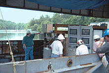 The Armed Forces have many numerical designations for computers or other equipment, to guide the military buyer's choice of appropriate technology for their application. For instance, MIL-S-901D[1] would indicate that the computer passed shock and vibration requirements of specific tests for Navy installation. Some of these tests are specific to application usage, such as barge explosion testing, which simulates a torpedo hit and subsequent high peak shock to a ship on which the computer is installed. The "gold standard" of testing for compliance with 901D is the Barge Test. A Barge Test is performed four times, each time placing 60 lbs HBX-1 explosive 24 feet under water, starting at 40 feet away, then at 30, 25 and finally 20 feet. In addition, the tests are performed in a fore-and-aft orientation to simulate an explosion at the bow or stern of the ship and athwartship to simulate an explosion by the side of the ship. A video of a barge test can be viewed.