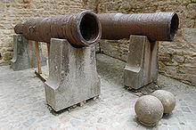 Medieval fleets, in France as elsewhere, were almost entirely composed of merchant ships enlisted into naval service in time of war, but the early beginnings of the French naval history goes back to that era. The first battle of the French Navy was the battle of Arnemuiden (23 September 1338), where it defeated the English Navy.[10] The battle of Arnemuiden was also the first naval battle using artillery.[11] It was later defeated by an Anglo-Flemish fleet at the Battle of Sluys and, with Castilian help, managed to beat the English at La Rochelle—both battles playing a crucial role in the development of the Hundred Years War. However, the navy did not become a consistent instrument of national power until the 17th century with Louis XIV. Under the tutelage of the "Sun King," the French Navy was well financed and equipped, managing to resoundingly defeat a combined Spanish-Dutch fleet at the Battle of Palermo in 1676 during the Franco-Dutch War, although, along with the English navy, it suffered several strategic reversals against the Dutch, who were led by the brilliant Michiel de Ruyter. It scored several early victories in the Nine Years War against the Royal Navy and the Dutch Navy. Financial difficulties, however, allowed the English and the Dutch to regain the initiative at sea.