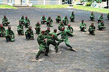 The Comorian Armed Forces (French: Armée nationale de développement) consist of a small standing army and a 500-member police force, as well as a 500-member defense force. A defense treaty with France provides naval resources for protection of territorial waters, training of Comorian military personnel, and air surveillance. France maintains a small troop presence in the Comoros at government request. France maintains a small maritime base and a Foreign Legion Detachment (DLEM) on Mayotte.[1]