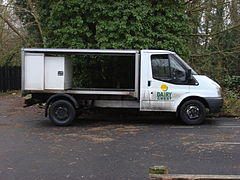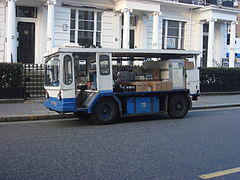 Milkmen appeared in Britain around 1860, when the first railways allowed fresh milk to arrive in cities from the countryside.[8] By 1880, the milk was delivered in bottles.[9] By 1975, 94% of milk was in glass bottles, but in 1990, supermarkets started offering plastic and carton containers, reducing bottled milk from 94% to 3% by 2016.[8] In the 20th century, milk delivery in urban areas of Europe has been carried out from an electric vehicle called a milk float.