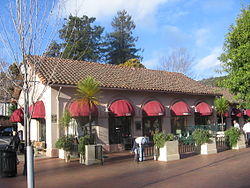 The 1980s and 1990s saw the decline of small businesses in Mill Valley. Local establishments like Lockwood's Pharmacy closed in 1981 after running almost continuously for 86 years. Old Mill Tavern, O'Leary's, and the Unknown Museum shut their doors, as did Red Cart Market and Tamalpais Hardware. In their places came boutiques, upscale clothing stores, coffee shops, art galleries, and gourmet grocery stores. Downtown Plaza and Lytton Square were remodeled to fit the new attitude. The population in the city alone swelled over 13,000 and many of the old, narrow, winding streets grew clogged with traffic congestion.[37] The Public Library expanded with a new Children's Room, a downstairs Fiction Room, and Internet computers.[41] It also joined MARINet, a consortium of all the public libraries in Marin, to allow patrons greater access to information. MARINet now has an online catalogue of all the materials, both physical and electronic, in the Marin public libraries, which patrons can order, pick up, and drop off materials at any of the participating libraries.[42] The Old Mill also got a facelift; it was rebuilt to the same specifications of the original in 1991. The 1990s also saw another influx of affluence. Many new homeowners gutted homes built in the 19th and early 20th centuries or tore them down altogether.