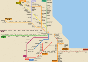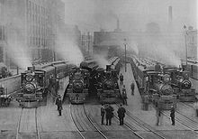 Located under Millennium Park, the terminal was established in the 1800s by the Illinois Central Railroad (IC) and has gone through several re-configurations. Most recently, it was rebuilt in the early 21st century and is owned by Metra through its operating arm, the Northeast Illinois Regional Commuter Railroad Corporation. Not counting commuters on the South Shore Line, over 18,000 people board Metra trains at Millennium Station each day.[1] During peak periods, trains leave the terminal as frequently as twice a minute. It is the third-busiest train station in Chicago.