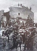 The fort suffered considerable damage during the Irish Civil War. It was occupied by Anti-Treaty forces and on 4 July 1922, it became the target of shelling by the army of the Irish Free State. The Free State Forces under Michael Collins had been given extensive support by the British Army at the express wish of Winston Churchill who insisted that the Republican Forces be crushed. Using the same British Army 18 pounder artillery piece which had shelled the Republican H.Q. in the Four Courts in Dublin some days earlier the Free State Forces bombarded Millmount fort for several hours before the Republican garrison retreated. It has been restored in 2000 and is now open to the public as a military museum.[2]