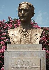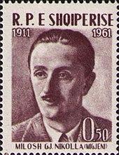 Millosh Gjergj Nikolla (Albanian pronunciation: [miˈɫoʃ ɟɛˈrɟ niˈkoɫa]; 13 October 1911 – 26 August 1938), commonly known by the acronym pen name Migjeni, was an Albanian poet and writer, considered as one of the most important of the 20th century. After his death, he was recognized as one of the main influential writers of interwar Albanian literature.