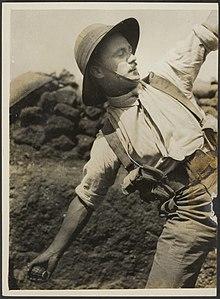 William Mills, a hand grenade designer from Sunderland, patented, developed and manufactured the "Mills bomb" at the Mills Munitions Factory in Birmingham, England, in 1915.[1] The Mills bomb was inspired by an earlier design by Belgian captain Leon Roland, who later engaged in a patent lawsuit.[2] Col. Arthur Morrow, a New Zealand Wars officer, also believed aspects of his patent were incorporated into the Mills Bomb.[3] The Mills bomb was adopted by the British Army as its standard hand grenade in 1915 as the No. 5.[4]
