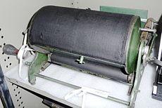 Once prepared, the stencil is wrapped around the ink-filled drum of the rotary machine. When a blank sheet of paper is drawn between the rotating drum and a pressure roller, ink is forced through the holes on the stencil onto the paper. Early flatbed machines used a kind of squeegee.