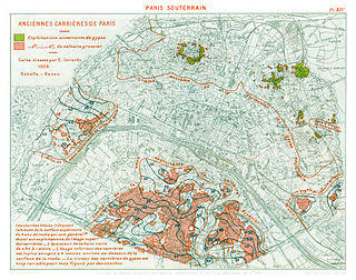 The mines of Paris (in French carrières de Paris — "quarries of Paris") comprise a number of abandoned, subterranean mines under Paris, France, connected together by galleries. Three main networks exist; the largest, known as the grand réseau sud ("large south network"), lies under the 5th, 6th, 14th and 15th arrondissements, a second under the 13th arrondissement, and a third under the 16th, though other minor networks are found under the 12th, 14th and 16th for instance. The commercial product was Lutetian limestone for use as a building material, as well as gypsum for use in "plaster of Paris".