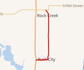 MN 361 began at a diamond interchange with I-35 in Rush City and traveled east along 4th Street. The route ran through the business district of the city and crossed the St. Croix Valley Railroad[2] before turning north on Bremer Avenue. Once on Bremer Avenue, MN 361 curved slightly to the northeast and left Rush City. North of the city limits, the highway passed to the west of the Rush City Regional Airport. It then continued north, leaving Chisago County and entering Pine County, while closely paralleling the railroad. As the route entered Pine County, it also entered the city limits of Rock Creek, in which it was known as Forest Boulevard. In Rock Creek, MN 361 turned to the northwest and passed under the railroad before ending at an intersection with MN 70.[3]