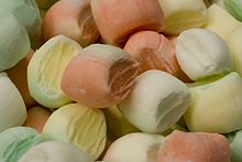 A mint is a food item often consumed as an after-meal refreshment or before business and social engagements to improve breath odor.[1] Mints are commonly believed to soothe the stomach given their association with natural byproducts of the plant genus Mentha.[2] Mints sometimes contain derivatives from plants such as peppermint oil or spearmint oil, or wintergreen from the plant genus Gaultheria. However, many of the most popular mints citing these natural sources contain none in their ingredient list or contain only trace amounts.[3][4][5]