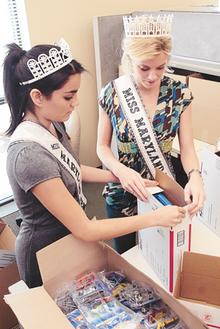 Ana Maria Lawson, Miss Maryland Teen USA 2008 assembles military care packages with Casandra Tressler, Miss Maryland USA 2008