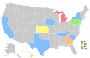 - States that placed in semifinals the previous year were California, Georgia, Kansas, South Carolina and Texas.