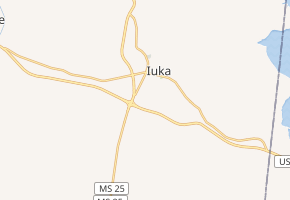 MS 172 begins at an intersection with US 72 near Burnsville in the western part of Tishomingo County.[2] The route heads to the north of US 72 as a two-lane undivided road before soon turning east-southeast at an intersection with County Road 982. From this point, the road heads through woodland with some farm fields and homes.[3] Several miles later, the route turns more east and the surroundings become more developed as it becomes Quitman Street and reaches an intersection with MS 25 on the western edge of Iuka.[2][3]