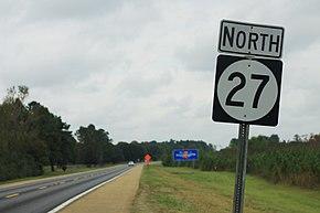 A sign for Mississippi Highway 27, located just north of the Louisiana state line.