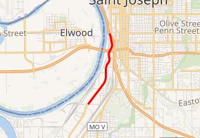 Route 759 is a short state highway in the city of St. Joseph, in Buchanan County, Missouri. The route runs for about 2.126 miles (3.421 km) under the monikers of Stockyards Expressway and South Second Street beginning at an intersection with West Florence Road. The southern terminus of Route 759 is at an at-grade intersection with Southwest Lower Lake Road in the stockyards section of the city. Paralleling two railroad lines, Interstate 229 (I-229) and the nearby Missouri River, Route 759 eventually weaves for more dense parts of the city, intersecting with U.S. Route 36 (US 36) before merging northbound into I-229 and US 59.
