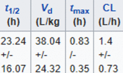 Pharmacokinetic analysis have largely taken place in live rodents as well as rodent and human microsomes.[21] Owing to the heterogeneity of analysis and paucity of human experiments conducted thus far, the pharmacokinetic profile of mitragynine is not complete.[21] However, initial pharmacokinetic studies in humans have yielded preliminary information.[4][21] In a study of 10 healthy volunteers taking orally administered mitragynine from whole leaf preparations, mitragynine appeared to have a much longer half-life than typical opioid agonists (7–39 hours) and reached peak plasma concentration within 1 hour of administration.[3]