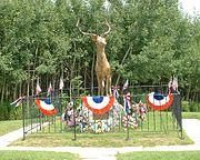 Today the Mohawk Trail is a part of Routes 2 and 2A. It follows much of the original Indian trail, from Westminster, Massachusetts to Williamstown, Massachusetts, for about 69 miles (111 km), and passes through the communities of Orange, Erving, Gill, Greenfield, Shelburne, Buckland, Charlemont, Savoy, Florida and North Adams. The Berkshire mountains are clearly visible from several points. The modern day Mohawk Trail is considered one of the most beautiful drives in Massachusetts. There are numerous points of interest along the way, including many scenic viewpoints, roadside attractions and gift shops.[2] Of particular note is Hail to the Sunrise at Mohawk Park, a statue made in tribute to Native American heritage. A portion of the trail parallels the Deerfield River for several miles, and passes through the village of Shelburne Falls, and the Bridge of Flowers. The route crosses the Connecticut River via the historic French King Bridge at a height of 140 feet. The road reaches a high elevation of 2272 feet at Whitcomb Summit. On the western side of the summit there is the popular hairpin turn and lookout, overlooking the city of North Adams and the Taconic Mountains. On the eastern side, the highway descends steeply eastward from Whitcomb Summit down the slope of the Hoosac Range following the Cold River to the Deerfield River. Notable features include the infamous Dead Man's Curve.[3]