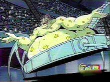 - Mojo appears in the Avengers Assemble episode "Mojo World", voiced by Ralph Garman.[14] Mojo's "Mojo Adams" incarnation used as a simulation to conceal his actual appearance from his viewing audience. Intending to capture Hulk for his tournaments, alongside the other combatants he abducted and threatened to fight by taking their planets hostage, Mojo finds his minions unintentionally abduct Hawkeye in the process as he pit the Earth hero against Torgo. After Hulk and Hawkeye forfeit an all-out fight, Mojo teleports them back to Earth and then plans to destroy it. With help from the other Avengers, Hulk and Hawkeye managed to defeat Mojo, and his hover-cameras end up showing his true appearance across the airwaves. Embarrassed, he ends up teleporting away from his ship. Torgo tells the Avengers that he will take the prisoners back to their worlds and have a bounty placed on Mojo's head.