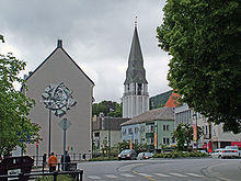 ![]() Eastward view of Molde. Molde Cathedral (left). | |