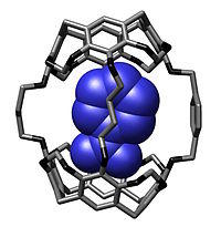 Molecular encapsulation in supramolecular chemistry is the confinement of a guest molecule inside the cavity of a supramolecular host molecule (molecular capsule, molecular container or cage compounds). Examples of supramolecular host molecule include carcerands and endohedral fullerenes.