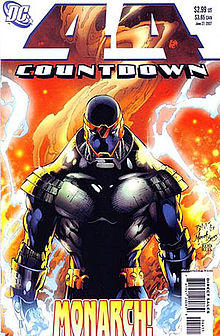Monarch appears in the last panel of Countdown #45. He appears to be observing Forerunner. In his weekly interview on Newsarama.com, Mike Marts revealed that Countdown #44 bears a cover by Ed Benes with the Monarch armor,[4] as in the same issue Monarch manages to sway Forerunner to his side, turning her against the Monitors.