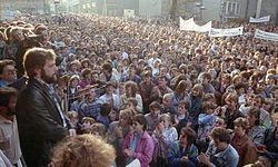 The Monday demonstrations in East Germany (German: Montagsdemonstrationen) were a series of peaceful political protests against the government of the German Democratic Republic (GDR) that took place in towns and cities all around the country on various days of the week. The Leipzig demonstrations, which are the most well known, took place on Mondays.[1] The protests that occurred between 1989 and 1991 can be separated into five cycles.