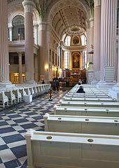 Despite the policy of state atheism in East Germany, Christian pastor Christian Führer regularly met with his congregation at St. Nicholas Church in Leipzig for prayer since 1982.[2][3] In Leipzig the demonstrations began on 4 September 1989 after the weekly Friedensgebet (prayer for peace) in the St. Nicholas Church with parson Christian Führer, and eventually filled the nearby Karl Marx Square (today known again as Augustusplatz). Safe in the knowledge that the Lutheran Church supported their resistance, many dissatisfied East German citizens gathered in the court of the church, and non-violent demonstrations began in order to demand rights such as the freedom to travel to foreign countries and to elect a democratic government. The location of the demonstration contributed to the success of the protests. Over the next seven years, the Church grew, despite authorities barricading the streets leading to it, and after church services, peaceful candlelit marches took place.[2] The secret police issued death threats and even attacked some of the marchers, but the crowd still continued to gather.[2]