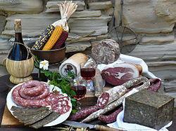Local produce ranges from salt-cured meat (prosciutto, salami, pancetta, capicola, lucanica sausage etc.) and cheeses, home-made pasta, such as tortellini, tortelloni, lasagne, tagliatelle, local truffles, wild mushrooms and sweet chestnuts, etc. The influence of Tuscany is also strongly felt with game being prevalent in the autumn months as well as the Fiorentina steak, pappardelle and other pasta dishes.