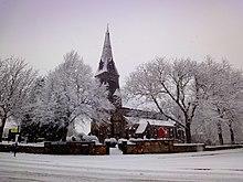 Although the nearby Priory formed a Christian community (until dissolution by Henry VIII), Monk Bretton did not possess a church until 1838. The village formed part of the extensive parish of Royston. In 1838 the foundation stone for the first church was laid on a site donated by Sir George Wombwell, at the corner of Cross Street and Burton Road. A new chapelry district, separating Monk Bretton (with Cudworth) from Royston parish and enabling 'baptisms, churchings and burials', was created by Queen Victoria by an order in Council on 22 July 1843.[10] The first church was replaced (on the same site) by the present St Paul's Church in 1878.[11] The church, built in the late Decorated style, is now a grade II listed building.[12] The churchyard contains 16 burials from the 1866 Oaks Colliery explosion.