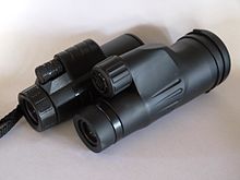 - "Day-night vision" or sometimes just "night vision" is another misleading descriptor commonly seen in the specification of low-end, budget monoculars as it gives the impression the item is a night-vision instrument, effective in darkness, when it clearly is not. True night vision monoculars (or "image intensifiers", as typically used in military applications for example) use an electrical power source for light enhancement and are substantially more expensive and bulky than a comparable normal monocular.