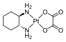 Structure of the pharmaceutical Oxaliplatin, which features two different bidentate ligands.