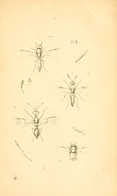 Walker briefly corresponded with Darwin. The first letter, written in 1838, thanks Darwin for improving his descriptions of species by indicating localities and remarks that, with few exceptions the Chalcidites of South America and Australia are remarkably like European species. The second letter, written in December, 1843, tells Darwin that most of his chalcids were all similar to European species or genera, but other species were quite different from those known from Europe.