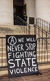 In unorganized and underground markets, violence is used to enforce contracts in the absence of accessible legal conflict resolution.[9] Charles Tilly continues this comparison to say that warmaking and statemaking are actually the best representations of what organized crime can grow into.[10] The relationship between the state, markets and violence has been noted as having a direct relationship, using violence as a form of coercion.[11][12] Anarchists view a direct relationship between capitalism, authority, and the state, the notion of a monopoly of violence is largely connected to anarchist philosophy of rejection of all unjustified hierarchy.[13][14]