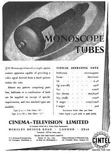 - ^ "4560 Custom-built, 2" diameter, Electrostatic-Focus, Electrostatic-Deflection Monoscope Tubes For Use As Alphanumeric Character Generators data sheet" (PDF). RCA Electronic Components. May 1969. Retrieved 27 September 2017.