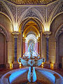 An English merchant named Gerard de Visme rented the farm in 1789[4] and built a neo-Gothic house over the ruins of the chapel. In 1793-1794 the estate was subleased by William Thomas Beckford who started to design a landscaped garden.[3] Though the property was still in ruins when Lord Byron visited in 1809, its magnificent appearance inspired the poet, who mentioned of the beauty of Monserrate in Childe Harold's Pilgrimage. After that, the property attracted foreign travelers’ attention.[4] One of them was Francis Cook, a wealthy English merchant who subleased the estate in 1856 and was graced with the title of Viscount of Monserrate by King D. Louis. Cook purchased the property in 1863 and started to work with the architect James Knowles on the remains of the house built by de Visme.[4] The Palace became the summer residence of the Cook family.[5]