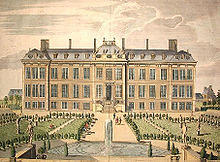 His first house was designed by the English architect and scientist Robert Hooke, an architect of moderate ability whose style was influenced by French planning and Dutch detailing, and was built between 1675 and 1679. Admired by contemporaries, it had a central block and two service blocks flanking a large courtyard and featured murals by the Italian artist Antonio Verrio. The French painter Jacques Rousseau also contributed wall paintings.[1] In 1686, the house was destroyed by fire.