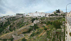 Gargano (Italian pronunciation: [ɡar'ɡaːno]) is a historical and geographical sub-region in the province of Foggia, Apulia, southeast Italy, consisting of a wide isolated mountain massif made of highland and several peaks and forming the backbone of the Gargano Promontory projecting into the Adriatic Sea, the "spur" on the Italian "boot". The high point is Monte Calvo at 1,065 m (3,494 ft). Most of the upland area, about 1,200 km2 (460 sq mi), is part of the Gargano National Park, founded in 1991. In this region since 1978 a feud has been fought between the clans of the Società foggiana.[1]