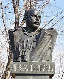 Monte Melkonian (classical Armenian: Մոնթէ Մելքոնեան; reformed: Մոնթե Մելքոնյան; November 25, 1957 – June 12, 1993) was an Armenian-American revolutionary,[1] left-wing nationalist militant, and national hero. He was the leader of an offshoot of the Armenian Secret Army for the Liberation of Armenia (ASALA)[2] in the 1980s and was a commander in the Armenian army in Nagorno-Karabakh fighting Azerbaijan during the First Nagorno-Karabakh War in the early 1990s.[3] Melkonian left the United States and arrived in Iran in 1978 during the beginning of the 1979 Revolution, taking part in demonstrations against the Shah. Following the collapse of the Shah's monarchy, he traveled to Lebanon during the height of the civil war and served in an Armenian militia group in the Beirut suburb of Bourj Hammoud. In ASALA, he took part in the assassinations of several Turkish diplomats in Europe during the early to mid-1980s. He planned the 1981 Turkish consulate attack in Paris.[4] He was later arrested and sent to prison in France. In 1989, he was released and in the following year, acquired a visa to travel to Armenia.