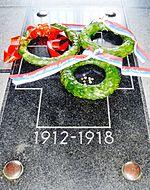 Based on the examination in 1921 and the properties discovered, it wasn't possible to identify the soldier or even to conclude in which unit he served.[2] Several historians from Belgrade and Sarajevo have claimed that the unknown hero is a Bosniak named Sulejman Balić, a soldier from Duga Poljana, a town between Novi Pazar and Sjenica, that fought in the Serbian army against Austria-Hungary.[5] But as the evidence suggest, the soldier was drafted immediately prior to the battle in October 1915, as he didn't receive the ID badge, so this claim is unlikely.[4]