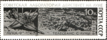 The Luna 9 spacecraft, launched by the Soviet Union, performed the first successful soft Moon landing on 3 February 1966. Airbags protected its 99 kilograms (218 lb) ejectable capsule which survived an impact speed of over 15 metres per second (54 km/h; 34 mph).[24] Luna 13 duplicated this feat with a similar Moon landing on 24 December 1966. Both returned panoramic photographs that were the first views from the lunar surface.[25]