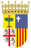 Armigers bearing moors or moors' heads may have adopted them for any of several reasons, to include symbolizing military victories in the Crusades, as a pun on the bearer's name in the canting arms of Morese, Negri, Saraceni, etc., or in the case of Frederick II, possibly to demonstrate the reach of his empire.[52] The arms of Pope Benedict XVI feature a moor's head, crowned and collared red, in reference to the arms of Freising, Germany.[53] In the case of Corsica and Sardinia, the blindfolded moors' heads in the four quarters have long been said to represent the four Moorish emirs who were defeated by Peter I of Aragon and Pamplona in the 11th century, the four moors' heads around a cross having been adopted to the arms of Aragon around 1281–1387, and Corsica and Sardinia having come under the dominion of the king of Aragon in 1297.[54] In Corsica, the blindfolds were lifted to the brow in the 18th century as a way of expressing the island's newfound independence.[55]