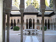 Moorish architecture is the articulated Islamic architecture of northern Africa and parts of Spain and Portugal, where the Moors were dominant between 711 and 1492. The best surviving examples of this architectural tradition are the Mosque–Cathedral of Córdoba and the Alhambra in Granada (mainly 1338–1390),[49] as well as the Giralda in Seville (1184).[50] Other notable examples include the ruined palace city of Medina Azahara (936–1010) and the Mosque of Cristo de la Luz, now a church, in Toledo, the Aljafería in Zaragoza and baths such as those at Ronda and Alhama de Granada.