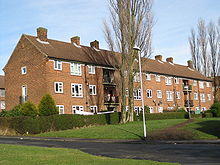 To the south of the ring road and east of King Lane is the Queenshill estate, mainly low-rise flats, which was opened in 1962 by Sir Keith Joseph.[13] This area contains a small row of shops, a fire station, Moortown Baptist Church, and the offices of the Leeds Jewish Housing Association.