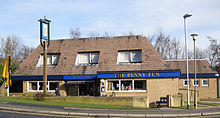 Moor Allerton District Centre is adjacent to the Moortown estate (west), north of the Ring Road and west of the junction with King Lane, which opened in 1982.[11] Primarily a shopping centre, with a large Sainsbury's, and a Homebase, it also includes a public library. A public house, the King on the Lane, was called the Penny Fun until 2019; its name relates to the history of the area as follows. The word 'pen' comes from the Celtic for 'hill'. What is now Tunnel How Hill is visible from the Centre to the south-west. It was previously Pen-how-fyn, and a hamlet around what is now the Centre was Paenfynaen (where fynaen means settlement). Tunnel How Hill was referred to as Penny Fun in the 19th century and several houses in the vicinity used the name.[12] There is a Penny Field nearby in Meanwood Park.