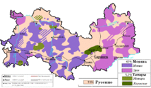 The Republic of Mordovia (Russian: Респу́блика Мордо́вия, tr. Respublika Mordoviya, IPA: [rʲɪsˈpublʲɪkə mɐrˈdovʲɪjə]; Moksha/Erzya: Мордовия Республикась,[12] Mordovija Respublikaś) is a federal subject of Russia (a republic). Its capital is the city of Saransk. As of the 2010 Census, the population of the republic was 834,755.[13] Ethnic Russians (53.4%) and Mordvins (40.0%) account for the majority of the population.