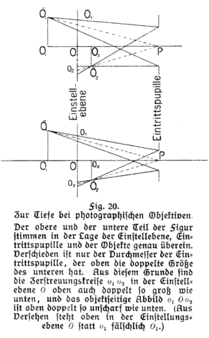 He also developed a method of computing depth of field from a camera's entrance pupil location and diameter, without reference to focal length and f-number (see his 1904 and 1906 books). He says, "At this point it will be sufficient to note that all these formulae involve quantities relating exclusively to the entrance-pupil and its position with respect to the object-point, whereas the focal length of the transforming system does not enter into them." T. R. Dallmeyer refers to Von Rohr’s "interpretation" of depth of field in his 1899 book Telephotography.