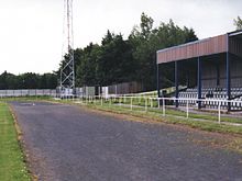 The club initially played at Stobhill Cricket Field, before moving to Storey Park in 1954.[4] In 1994 they relocated to Craik Park, named for W and R Craik, who had been the club's secretaries between 1920 and 1985.[4] Craik Park had been built in 1972 as an athletics venue with a 6-lane cinder track, which was used for training by Morpeth Harriers & AC.[5] After the football club moved to the ground, they built a 100-seat stand and a new clubhouses, as well as erecting floodlights.[5]