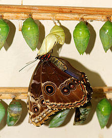 Many names attach to the genus Morpho. The genus has also been divided into subgenera. Hundreds of form, variety, and aberration names are used among Morpho species and subspecies. One lepidopterist[2] includes all such species within a single genus, and synonymized many names in a limited number of species. Two other lepidopterists[3] use a phylogenetic analysis with different nomenclature. Other authorities accept many more species.[4]